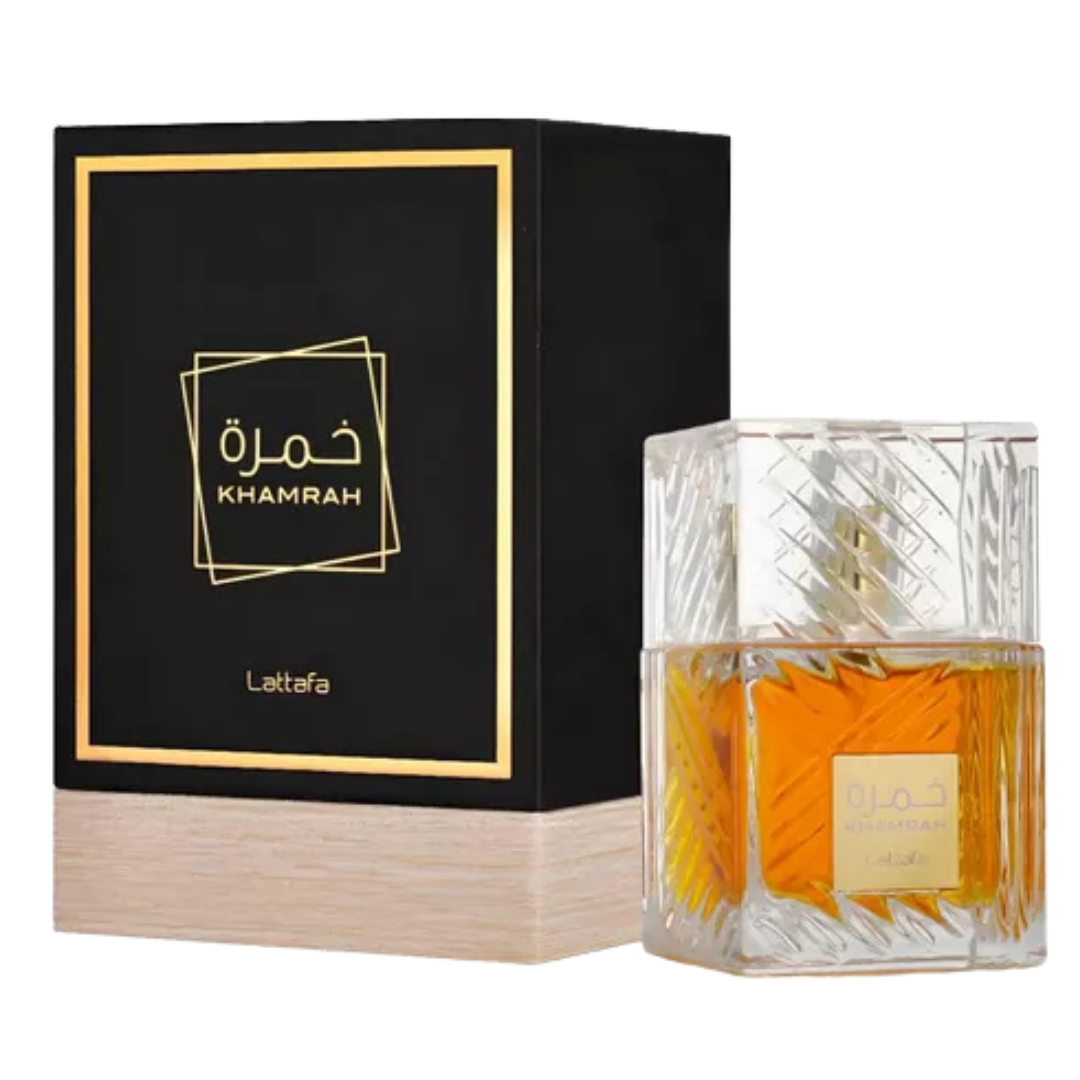 Khamrah de Lattafa Perfumes é um perfume Aromático Especiado Compartilhável. Esta é uma nova fragrância. Khamrah foi lançada em 2022. As notas de topo são: Canela, Noz-moscada e Bergamota. As notas de coração são: Tâmaras, Pralinê, Tuberosa e Mahonial®. As notas de fundo são: Baunilha, Fava Tonka, Benjoim, Madeira de Âmbar, Mirra e Akigalawood.
