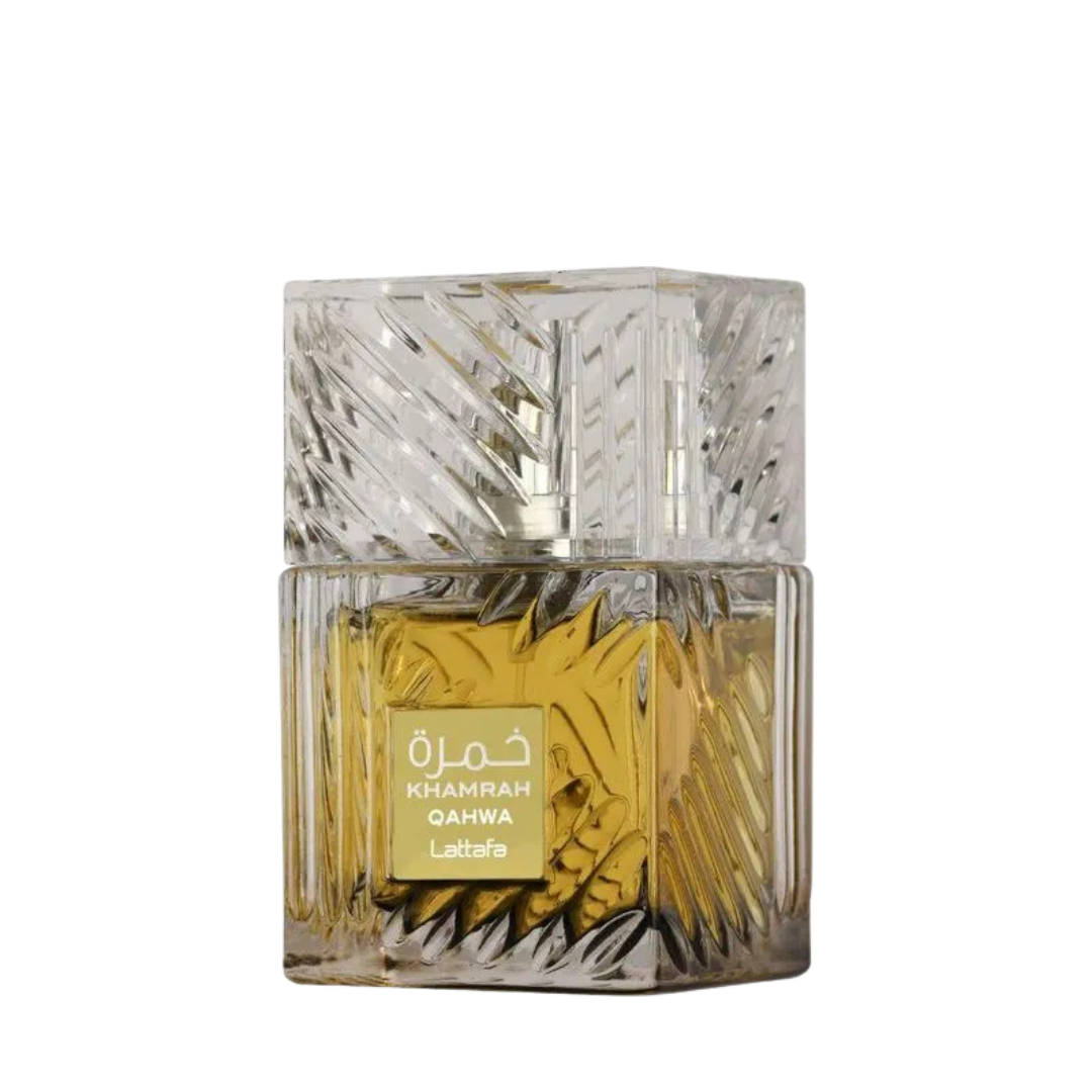 Khamrah Qahwa de Lattafa Perfumes é um perfume Compartilhável. Esta é uma nova fragrância. Khamrah Qahwa foi lançada em 2023. As notas de topo são: Canela, Cardamomo e Gengibre. As notas de coração são: Pralinê, Fruta Cristalizada e Flores Brancas. As notas de fundo são: Baunilha, Café, Fava Tonka, Benjoim e Almíscar.
